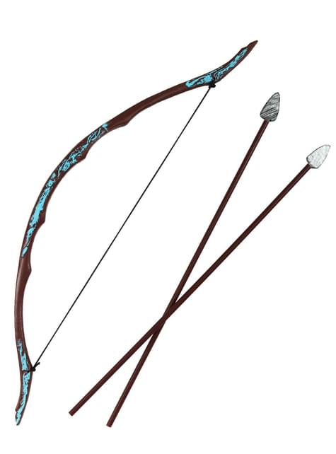 סט אגדי זו כולל קשת חום מפוארת עם פרטים כחולים, 40 סנטימטר מדידה, אידיאלית עבור ילדי קשתי נשים, וזוג החצים. קשת זו אינה תפקודית, זה אביזר עבור תחפושת.
