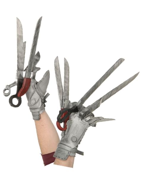 כולל זוג כפפות עם מספריים עם סכיני פלסטיק מצורפים.