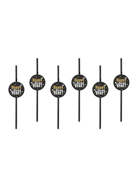 סט 6 "Happy New Year" שתייה בקש, שחור - Happy New Year
