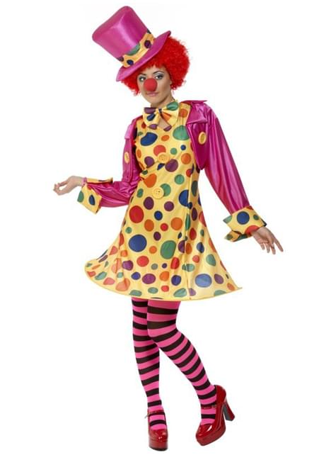 כולל פולקה צהוב נקודת שמלה, מעייל ורוד, עניבת פרפר, גרביים פסים ורודים ושחורים וכובע גבוה.