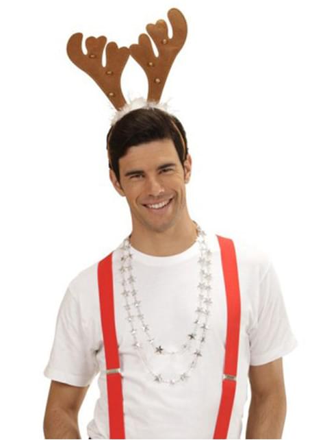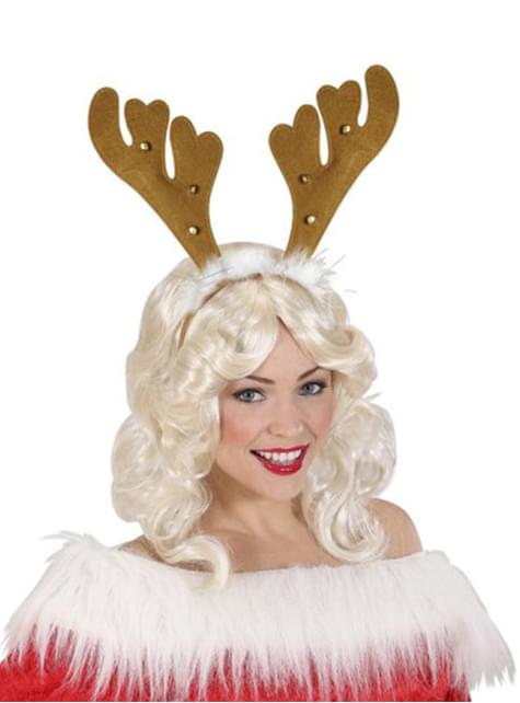 כולל וסרט חום עם קרנות איילים גדולות באותו הצבע, עם פעמונים זהובים פרווה סינתטית בבסיס הקרנות.